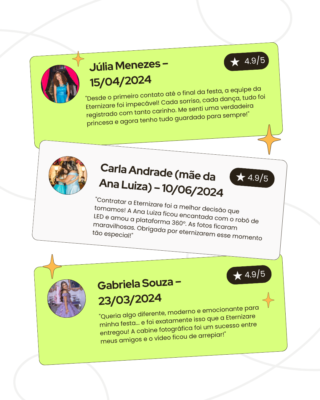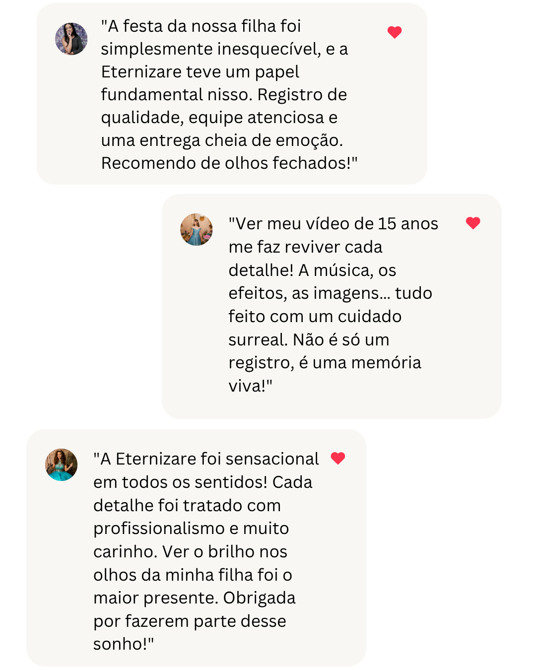 Depoimentos reais de debutantes e suas famílias que confiaram no nosso trabalho.