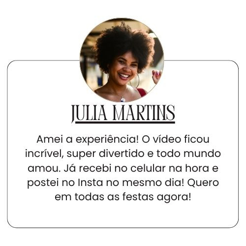 - 1 operador durante todo o evento para organizar os convidados, acionar os vídeos e orientar o uso dos adereços